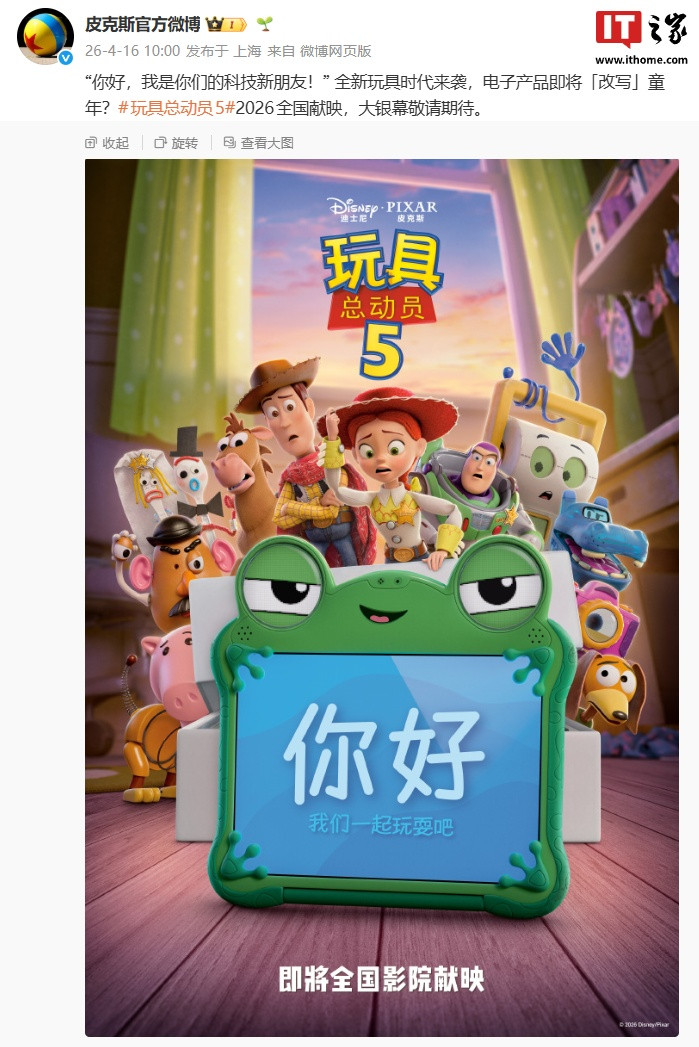 皮克斯官方微博4月16日晓示,动画电影《玩物总动员5》2026宇宙献映。这标明本片证据引进内地,但档期待定。凭证官方预热案牍来看,本片将深远考虑电子居品对孩子们童年的影响。