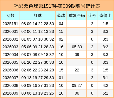 上期福彩双色球第2026009期奖号为:03、06、13、19、23、25 + 10,红球奇偶比为5:1,开出1枚重号06,连码未出。