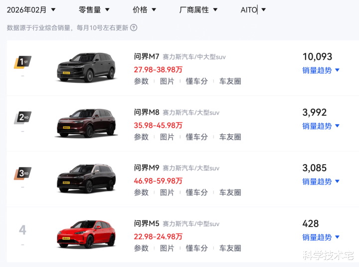 问界M9是前年大型SUV的销冠,这款车型一度是问界的销售主力,然而跟着问界M8的上市,问界的销售主力形成了价钱相对一些的问界M8,然后跟着新款问界M7的上市,问界的销售主力又形成了新款问界M7,前段工夫问界M6也开启预售,概况率···