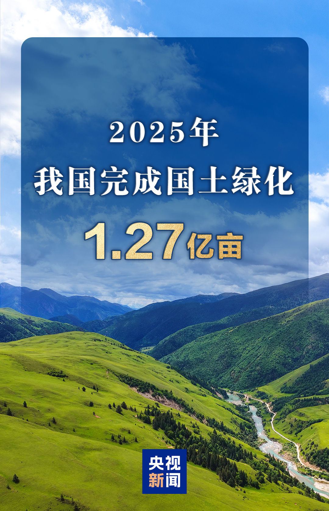 记者今天从国家林草局举办的全国林业和草原工作会议上获悉,2025年,我国完成国土绿化任务1.27亿亩,其中营造林5345万亩,退化草原修复治理7390万亩。