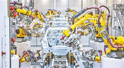 宝马沈阳工厂车身车间的生产线。