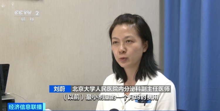 北京大学人民医院内分泌科副主任医师 刘蔚:以前最小剂量的月均费用在1700多元,目录实行之后,每个月最低剂量是300多元,这个价格还是医保报销之前的。医保一些新型的药物纳入,其实给了医生更多选项,也给了患者健康更多的保障。