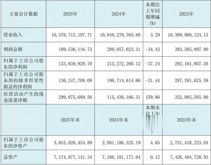 东说念主民同泰(600829)4月10日晚显露2025年年度发扬,发扬期内,公司兑现营业收入103.79亿元,较上年同期增长3.29%;兑现包摄于上市公司股东的净利润1.34亿元,较上年同期下落37.24%;加权平均净钞票收益率4.54%;基本每股收益0.23元;策划行径产生的现金流量净额约3亿元。