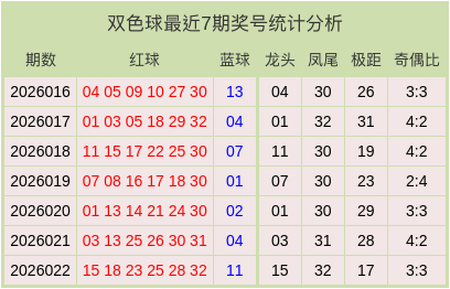 上期双色球的开奖号码中,首尾组合为15+32,极距为17,奇偶比为3:3。