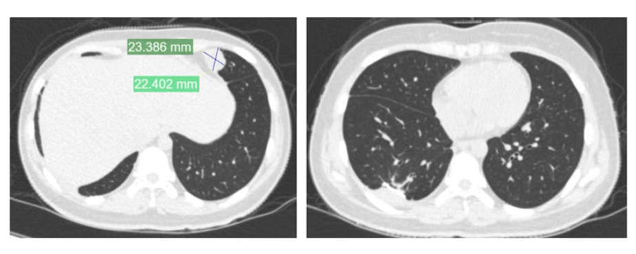 为帮助她巩固疗效并延长无病生存期,2024年2月,夏夏经过手术切除后未再进行化疗。术后5个月,左肺再次发现新发转移病灶。2024年11月,夏夏接受胸腔镜下右肺下叶切除术。2025年1月复查:右肺术后改变好转。