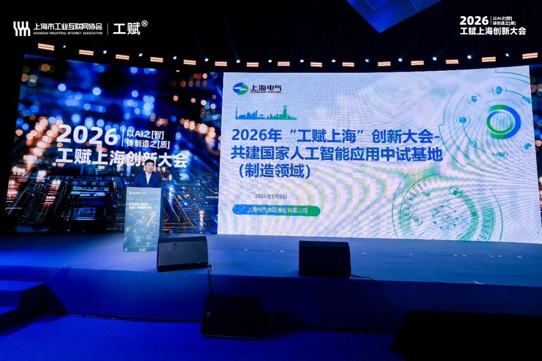1月8日,以“AI之‘智’,铸制造之‘质’”为主题的2026“工赋上海”创新大会在沪召开。上海市人民政府副秘书长张英出席会议并致辞,上海电气党委委员、副总裁贾廷纲应邀出席,并分享上海电气实践与思考。上海市相关委办局、行业企业代表、青年创业者及新闻媒体齐聚一堂,共探“AI+制造”融合发展新路径。
