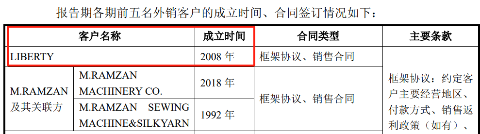 与此同时,LIBERTY是信胜科技的主要客户,也是公司产品出口到印度的最主要合作对象。《审核问询函的回复》第216页和232页都披露,LIBERTY的成立时间为2008年,但是在第227页又披露到:“报告期内,LIBERTY新设即成为发行人主要品牌商,主要原因系其实际控制人早期以个人为主体与发行人合作,其经营服装面料加工厂,系发行人产品的使用厂商,因认可发行人产品品质、看好发行人业务发展,实际控制人设立LIBERTY并选择成为发行人的品牌商。”对比上述信息,一边是披露LIBERTY成立于2008年,另一边则披露为“报告期内,LIBERTY新设”,这是否前后矛盾?