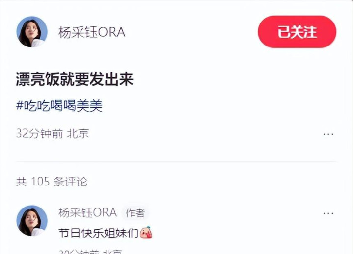 别的不提,就说本年春节她和老公回厦门婆家过年——那好意思瞻念,不少网友皆看直了眼。东谈主家不仅刚搬进了新家,豪华婚房曝光,险些像偶像剧。到了三八妇女节,杨采钰又放大招,po出跟老公过节的相片。一张手捏钻戒、妆容缜密的相片,还配了一句“漂亮饭就要发出来”,驳斥区径直祝人人“节日风物姐妹们”。这种生存典礼感,属实谁看了不念念赞扬一句“嫁得好便是不同样”!
