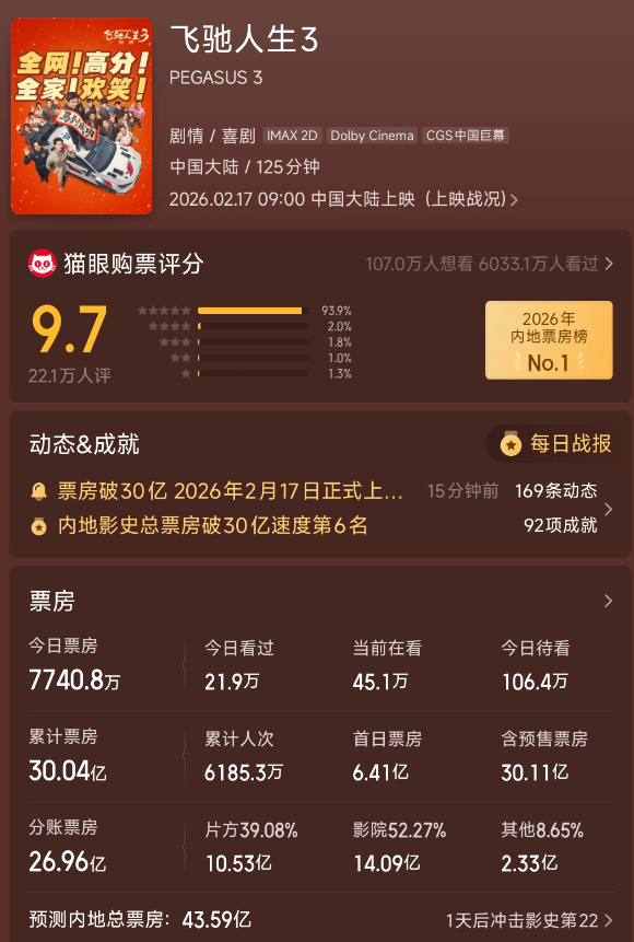 现在票房一骑绝尘的作品,无疑是沈腾主演的《飞奔东说念主生3》。
